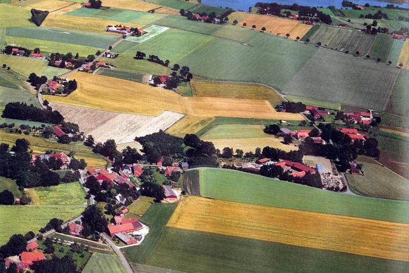 Huddestorf aus der Luft. Es zeigt den Ortskern von